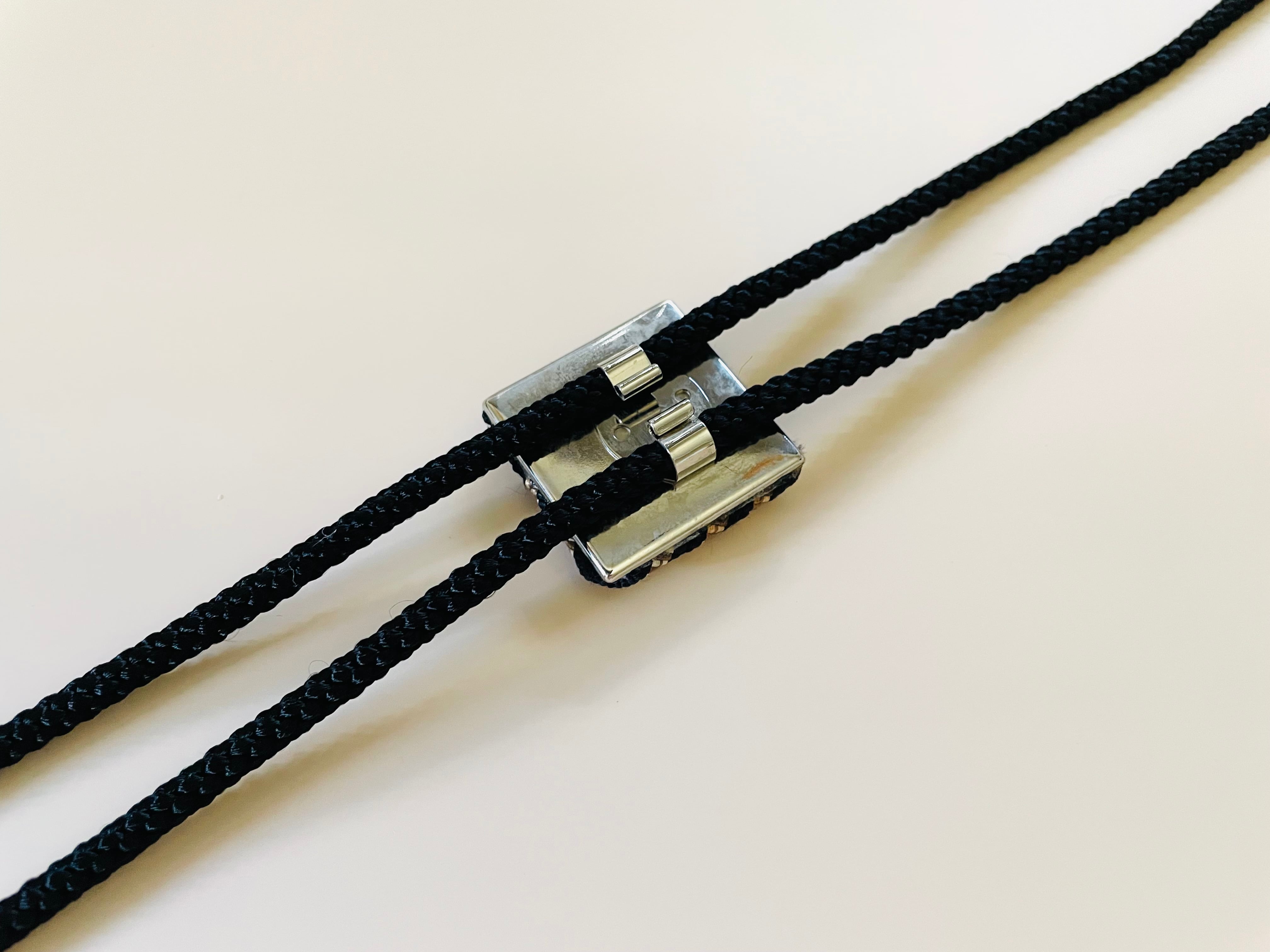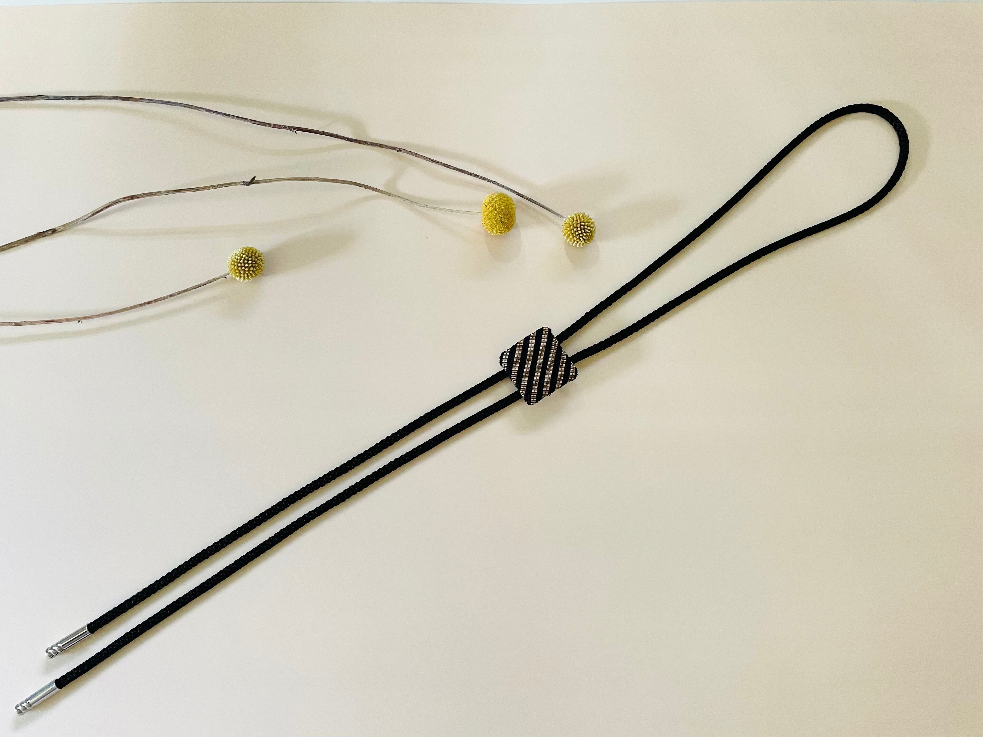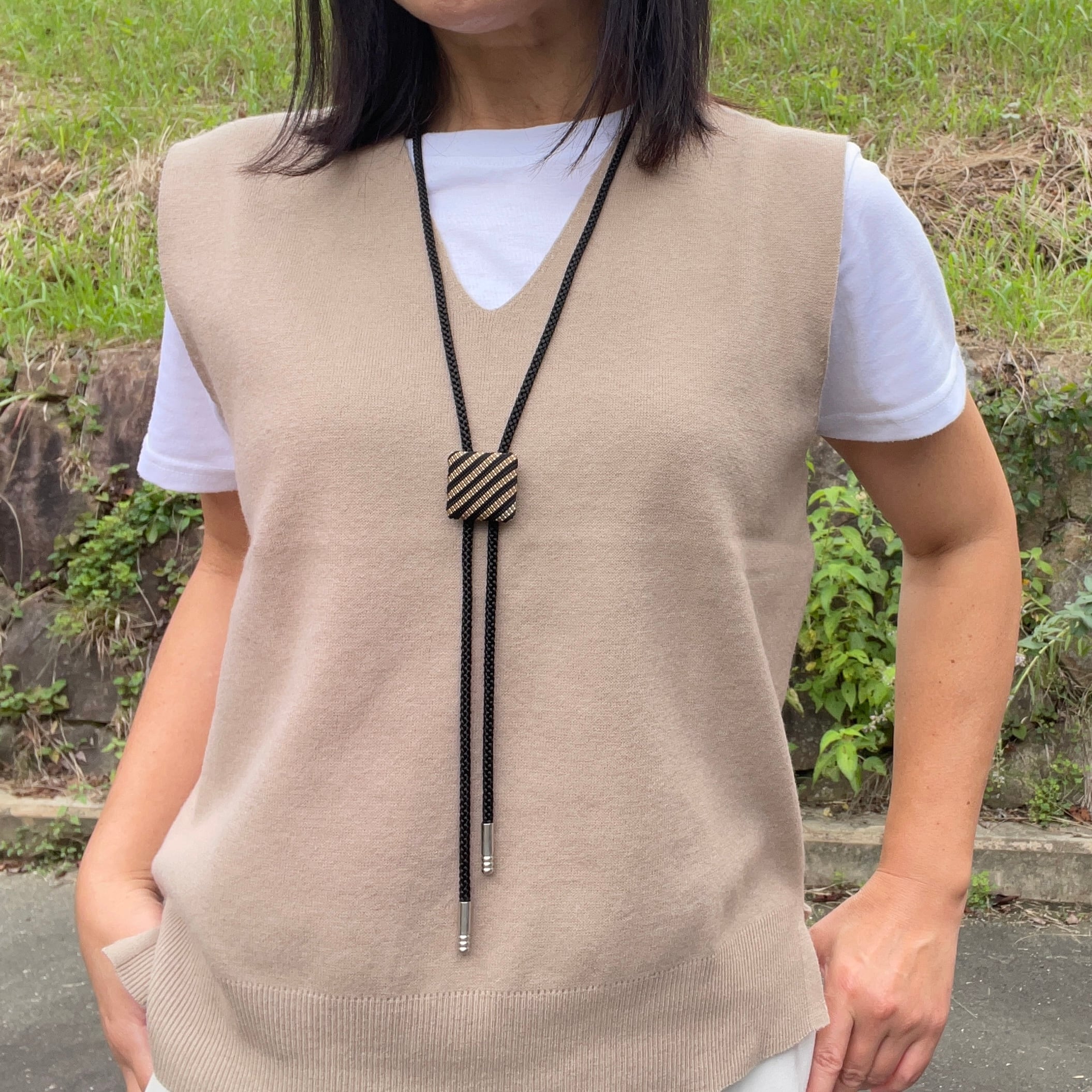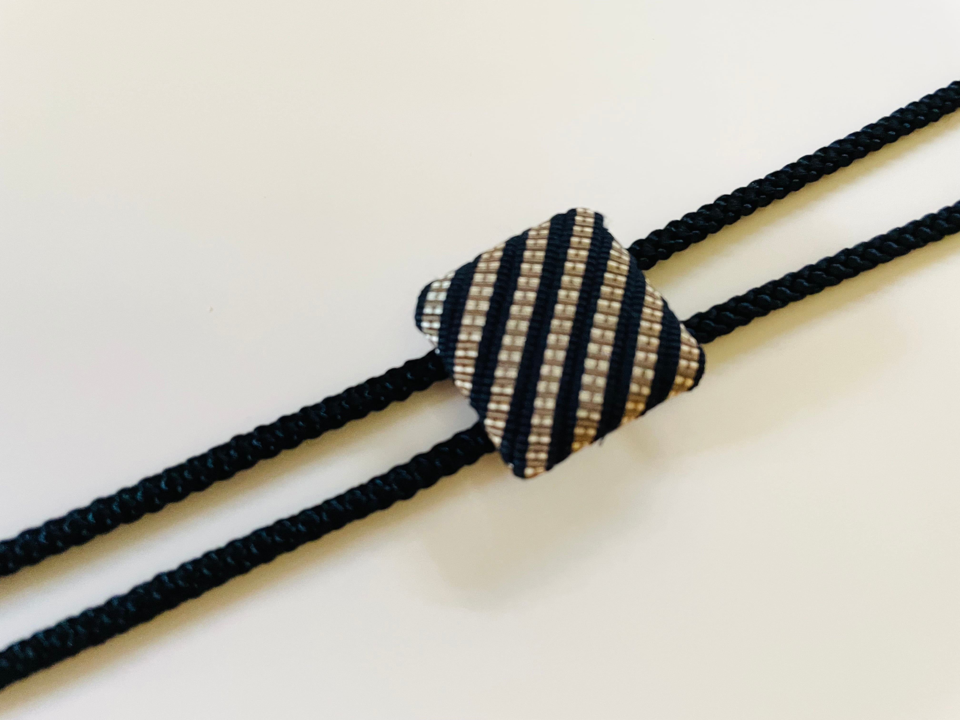 美しい織柄の6ミリ幅(2分幅)の絹真田紐をループタイトップに活かし、江戸打ち紐と合わせたループタイ。男女問わずお使いいただけます。